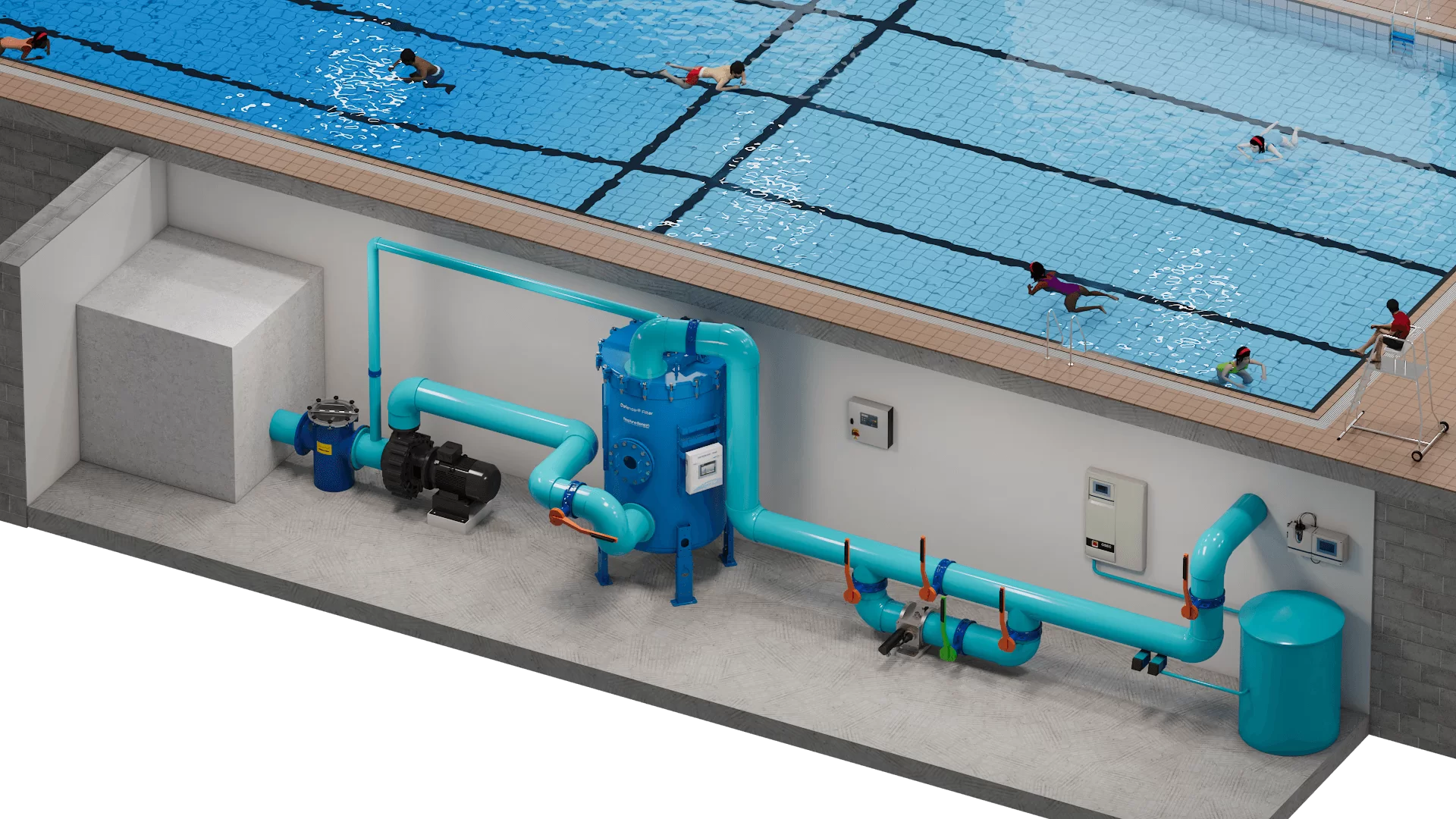 Системы регенеративной фильтрации Defender обеспечивают исключительные возможности фильтрации, а также значительную экономию воды и энергии по сравнению с песчаной фильтрацией. Регенеративные фильтры быстро заменили песчаные как лучший выбор для фильтрации воды в аквапарках, бассейнах и других водных сооружениях для отдыха и спорта. Системы способны фильтровать частицы размером до 1 микрона и не требуют обратной промывки, что невероятно экономит ресурсы.